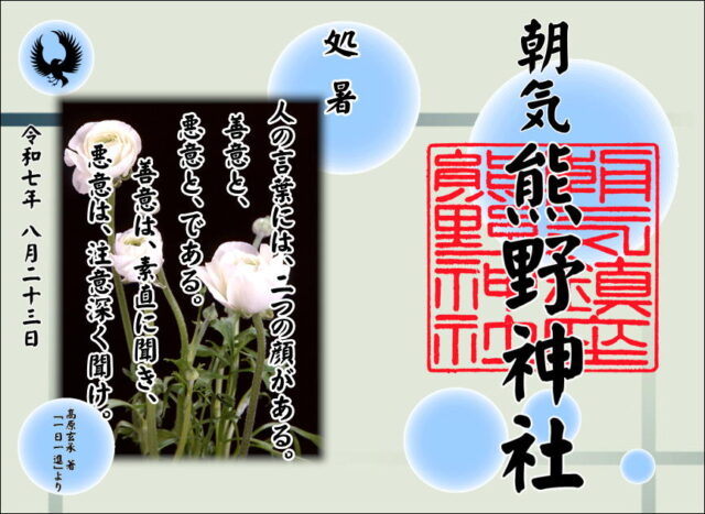 社頭のお知らせには、22日処暑ご朱印発行と記してしまいましたが、