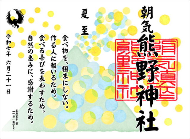 6月21日夏至のご朱印、社頭にて頒布中。甲府は今日も暑いので、気を付けてお参り下さい。