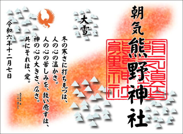 12月7日大雪ご朱印、社頭にて頒布中です。