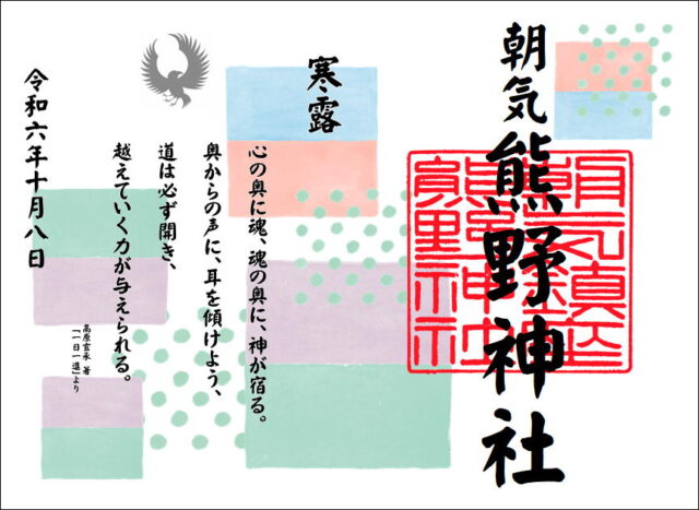 10月8日は24節気の寒露。朝露を踏むと一段と冷たく秋が深まる頃です。