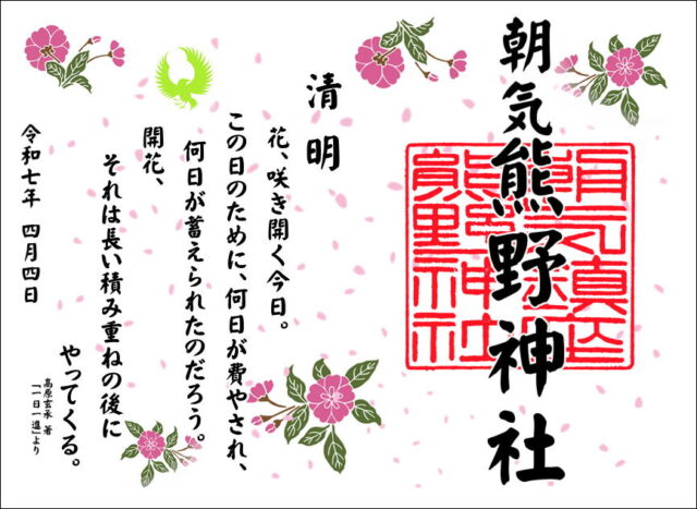 4月4日清明、桜花爛漫にして、天地万物が清新の気に満ち溢れてきます。