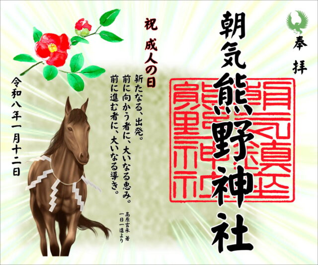 12日は成人の日。11日より社頭にて頒布開始。中サイズです。