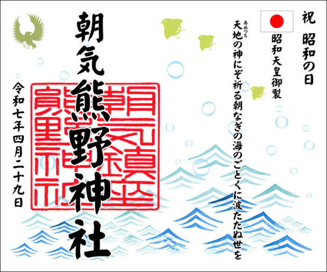 4月29日は昭和天皇誕生日。中サイズのご朱印を発行します。昭和天皇御製の和歌が記されています。