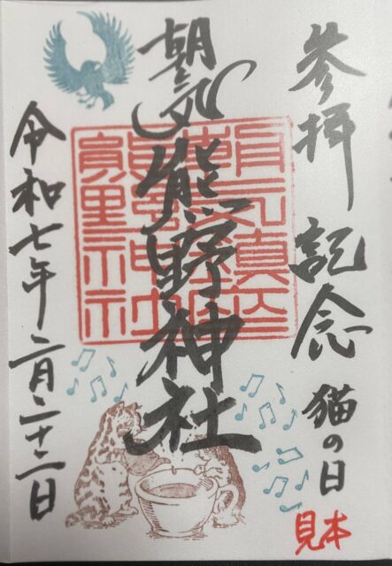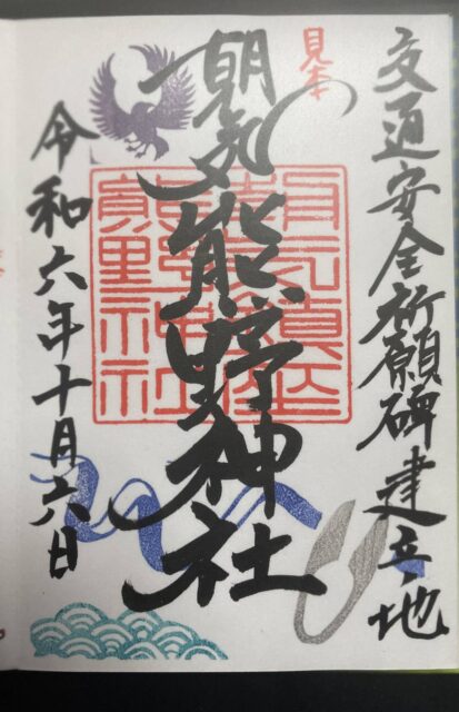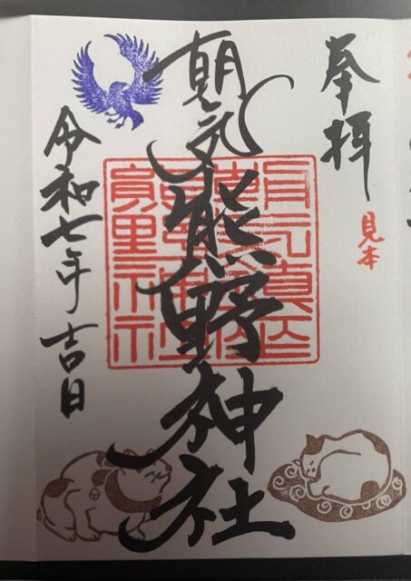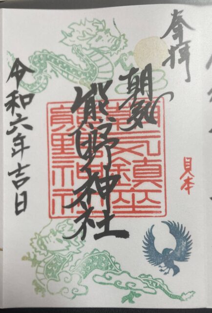 朝気熊野神社ご朱印帳に、オリジナル消しゴムハンコのご朱印見本をせっせと作りました。